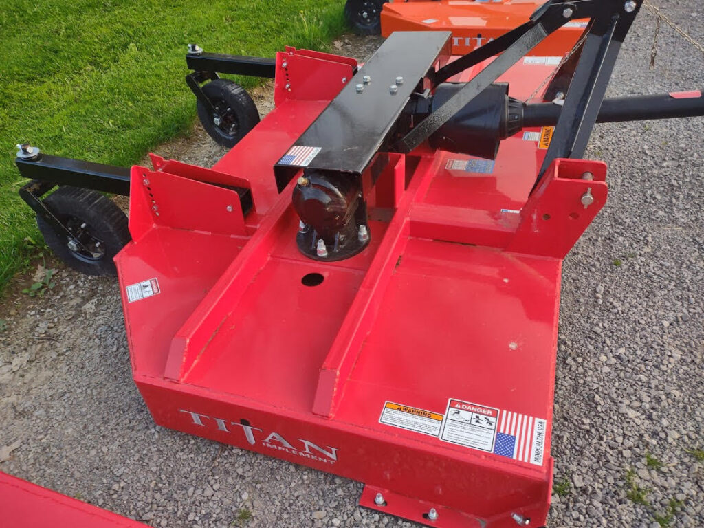 IronCraft Brush Hog 60" 3pt cat 1 flex hitch. 540 PTO drive with slip clutch. 55hp gear box. Stump jumper pan. 5 year manufacture gear box warranty applies. Weighs 620 lbs. 11 gauge steel construction. Many colors options in stock. Made in the U.S.A.