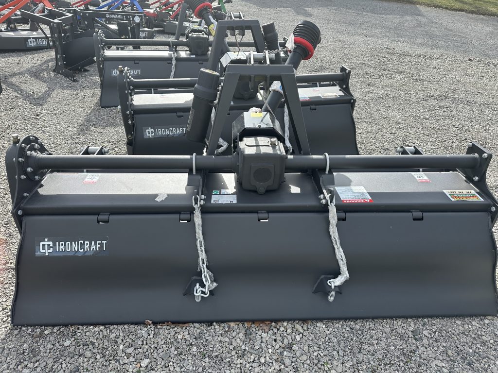 New IronCraft 72" UM-72. 6'. 3pt, gear driven. Tractor HP range 25-50. Category 1. 684 lbs. PTO input speed 540 RPM. Heavy duty rototiller. 1 year manufacture warranty.